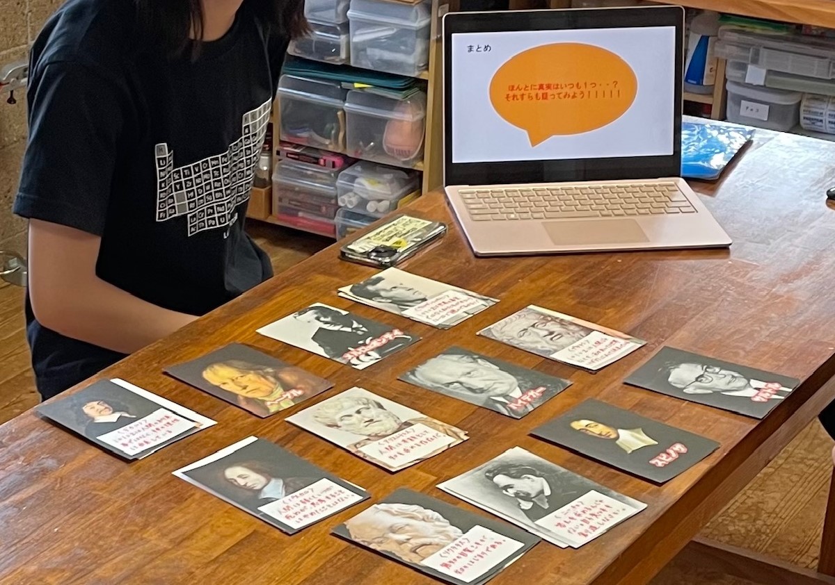 Oさんは対話の導入として、歴史上の哲学者の顔が描かれた『哲学者カルタ』を用意しました。