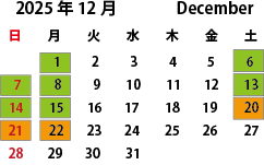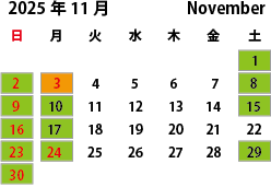 貸し切り・満室のため利用できません/半分黄色の日は15時まで満室
