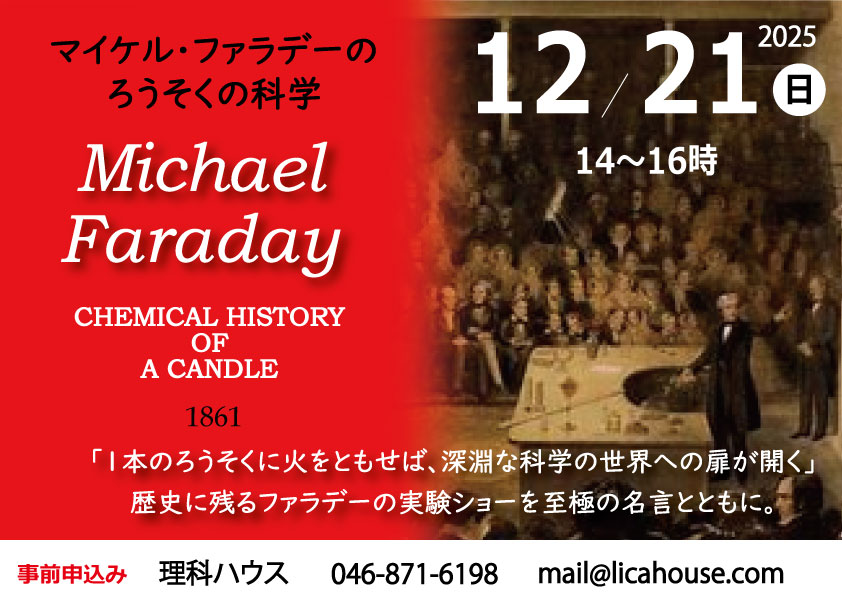12月21日(日)マイケル・ファラデーのクリスマスレクチャー「ろうそくの科学」/14~16時/申込み受付中